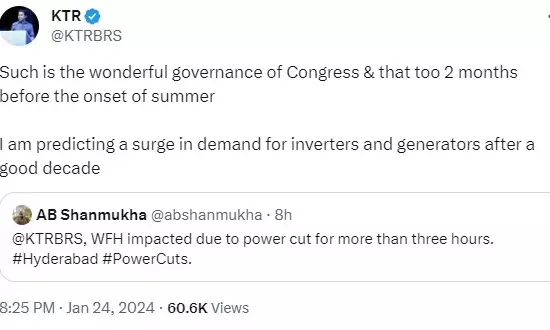 Sources in the energy department said that some BRS workers, out to prove that were power cuts, were following the maintenance work schedules and going around buildings pasting hand-written posters claiming that lifts were not working because of power cuts. This fake news has spread such proportions that even BRS working president K.T. Rama Rao reacted saying things like “such is the wonderful governance of Congress & that too 2 months before the onset of summer,” they said.