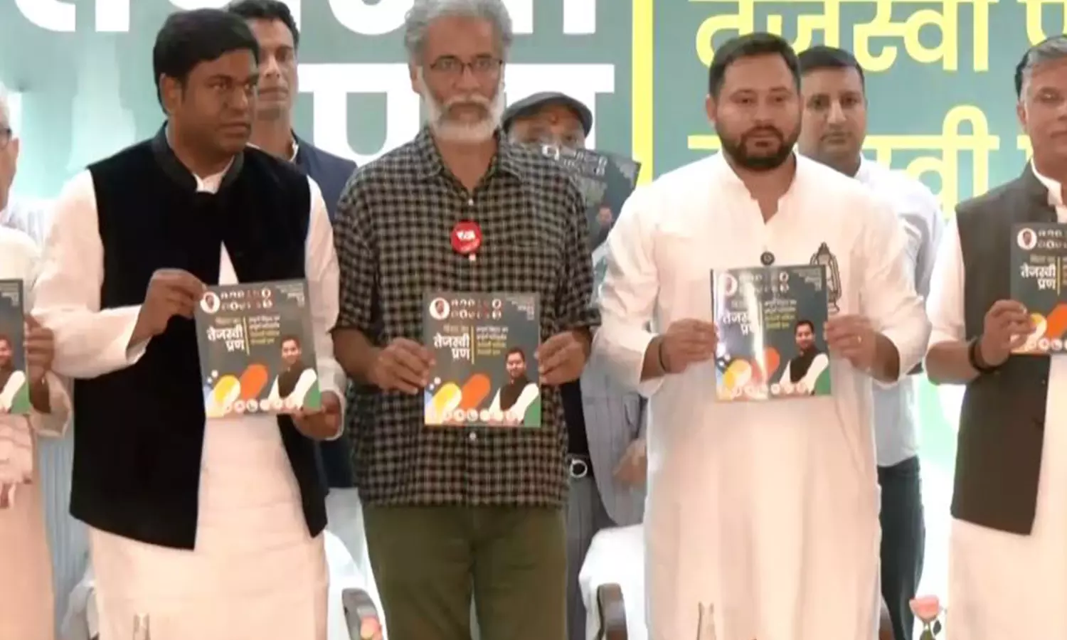 The 32-page ‘Bihar ka Tejashwi Pran’ (Tejashwi’s resolve) was released at a crowded press conference in Patna, where the I.N.D.I.A. bloc chief ministerial candidate and RJD leader Tejashwi Yadavwas joined by alliance partners. Yadav said the document contained "25 salient points assuring practical solutions" to the problems faced by the people in Bihar.