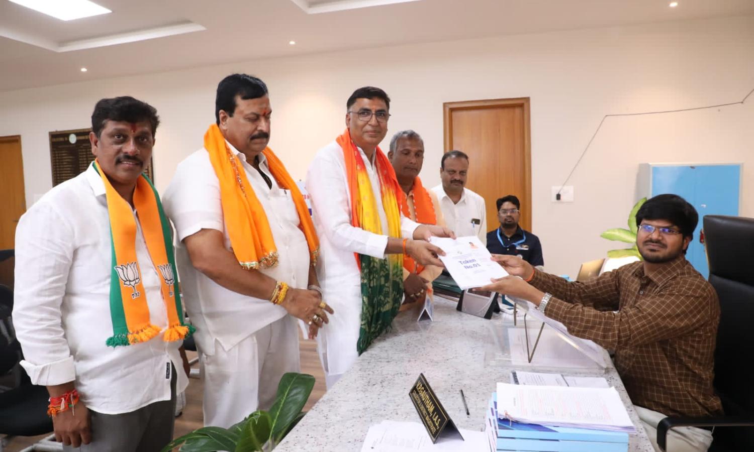 BJP Candidate From Khammam Lok Sabha Tandra Vinod Rao Files Nomination Papers