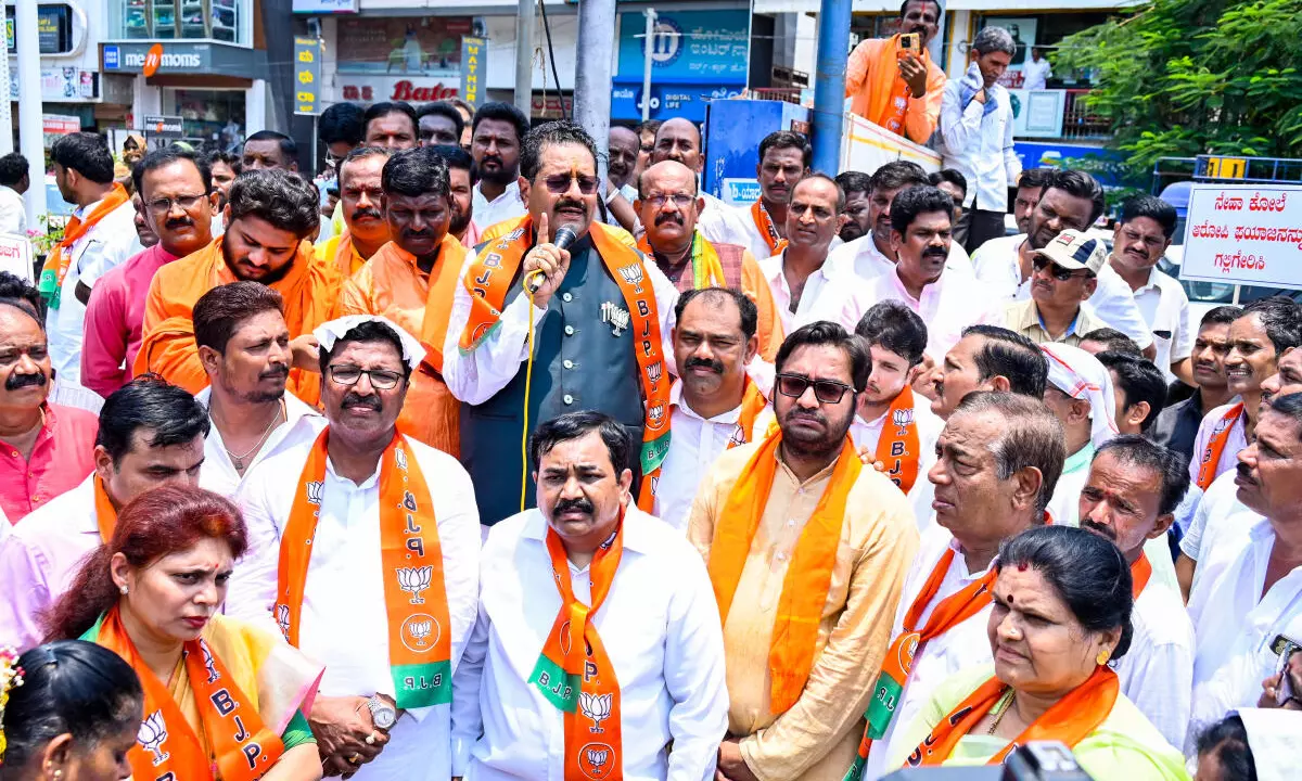 In Hubballi, BJP MLA Mahesh Tenginakai spearheaded the protest, leading demonstrators in vehemently opposing the state government's approach. The protestors demanded capital punishment for the accused, Fayaz.