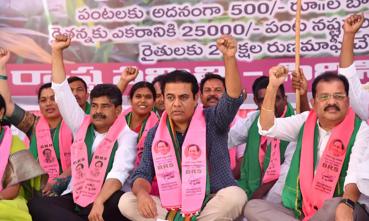 “While the Congress pushed the farmers into this situation, BRS president K. Chandrashekar Rao was braving the hot sun and is going to villages to meet farmers, and giving them courage and assuring them that party will stand by them. Our party will follow his footsteps and fight for the rights and welfare of farmers,” Rama Rao said.