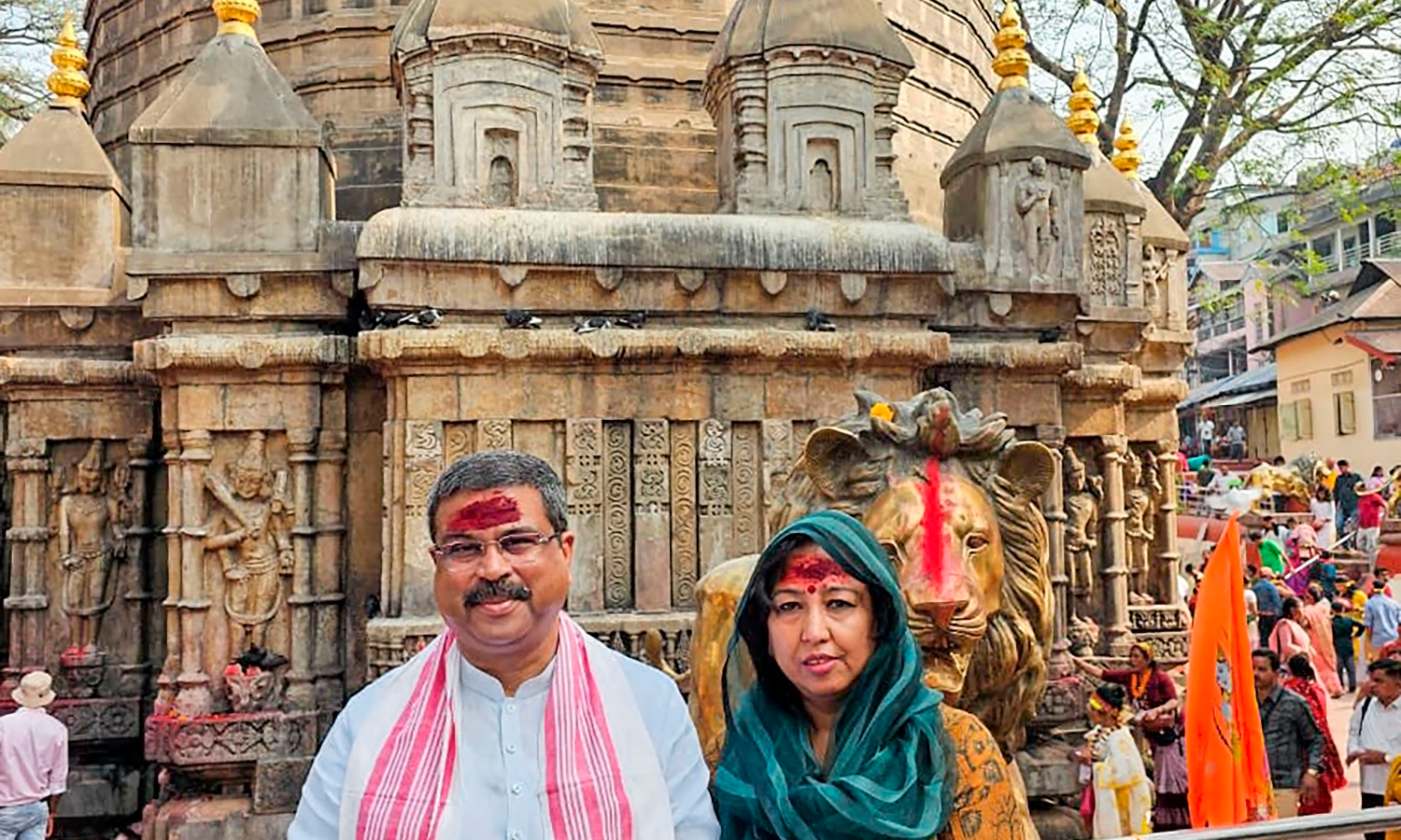 Bhubaneswar: Union minister Dharmendra Pradhan, who has returned to the electoral fray after a gap of 15 years, visited Jagannath temple in Puri and sought blessings from the sibling deities.