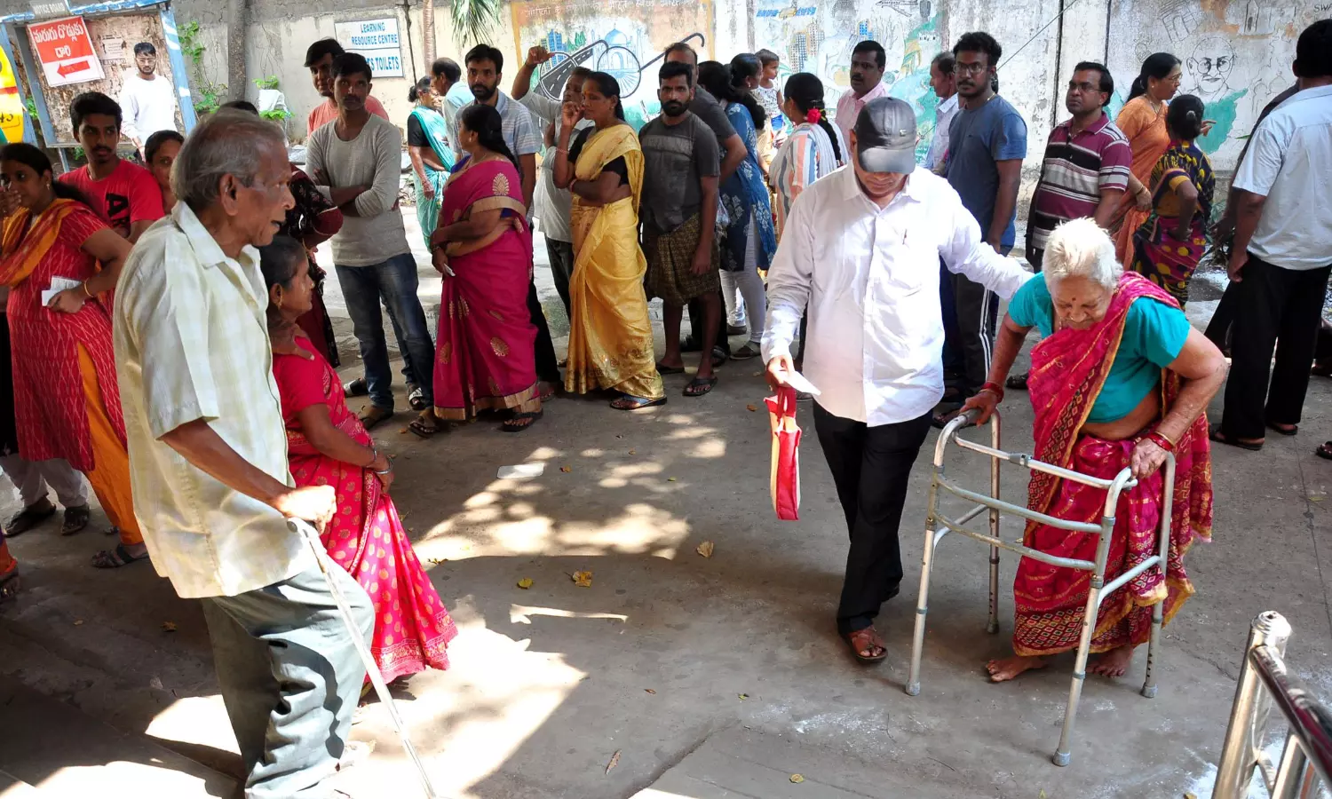 Numerous senior citizens and individuals with disabilities in Tirupati city exemplified the spirit of democracy by promptly arriving at polling stations to exercise their right to vote, determining the course of governance for the ensuing five years.