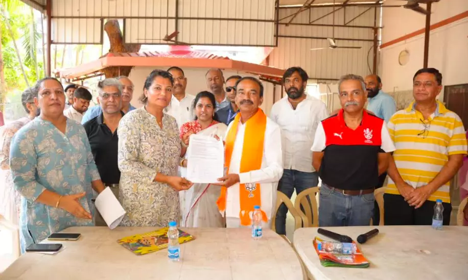 Hyderabad: BJP Malkajgiri candidate Etala Rajendar urged voters to reject politicians who are focused on their real estate business, rather than serving the public interest, at a meeting with residential welfare associations in Yapral.