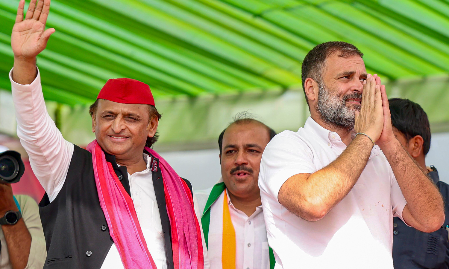 Speaking at a joint rally in Amroha with the SP chief, Mr Gandhi said on one side stands the INDIA bloc, committed to defending democracy and the Constitution, while on the other side, the BJP-RSS is engaged in dismantling these foundational principles.