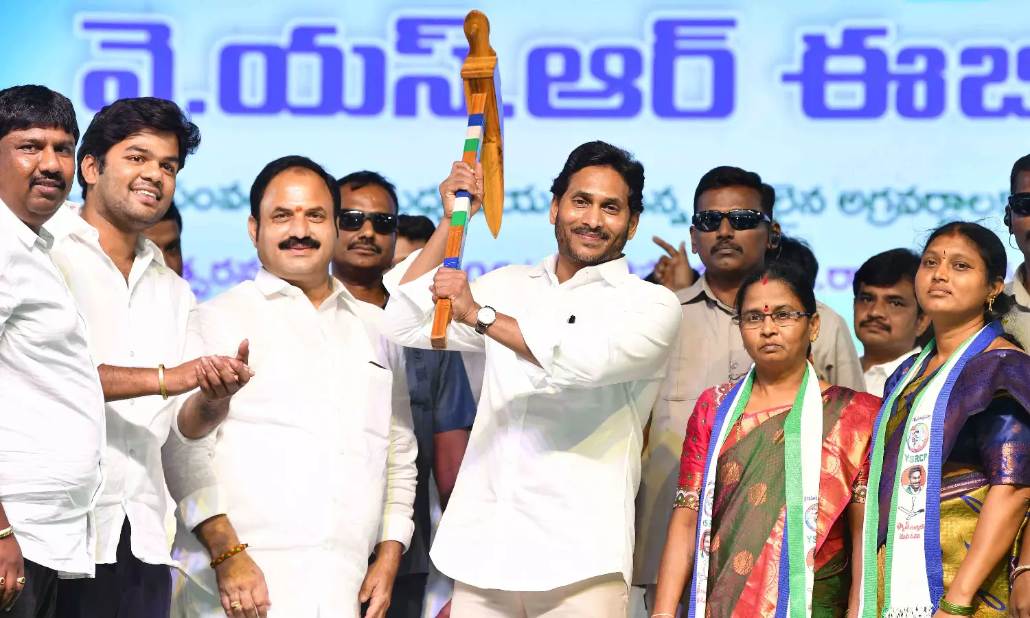 Jagan Mohan Reddy addressed the public in Banganapalle in Nandyal after his disbursement of Rs 629.37 crore under the EBC Nestham scheme to 4,19,583 beneficiaries.