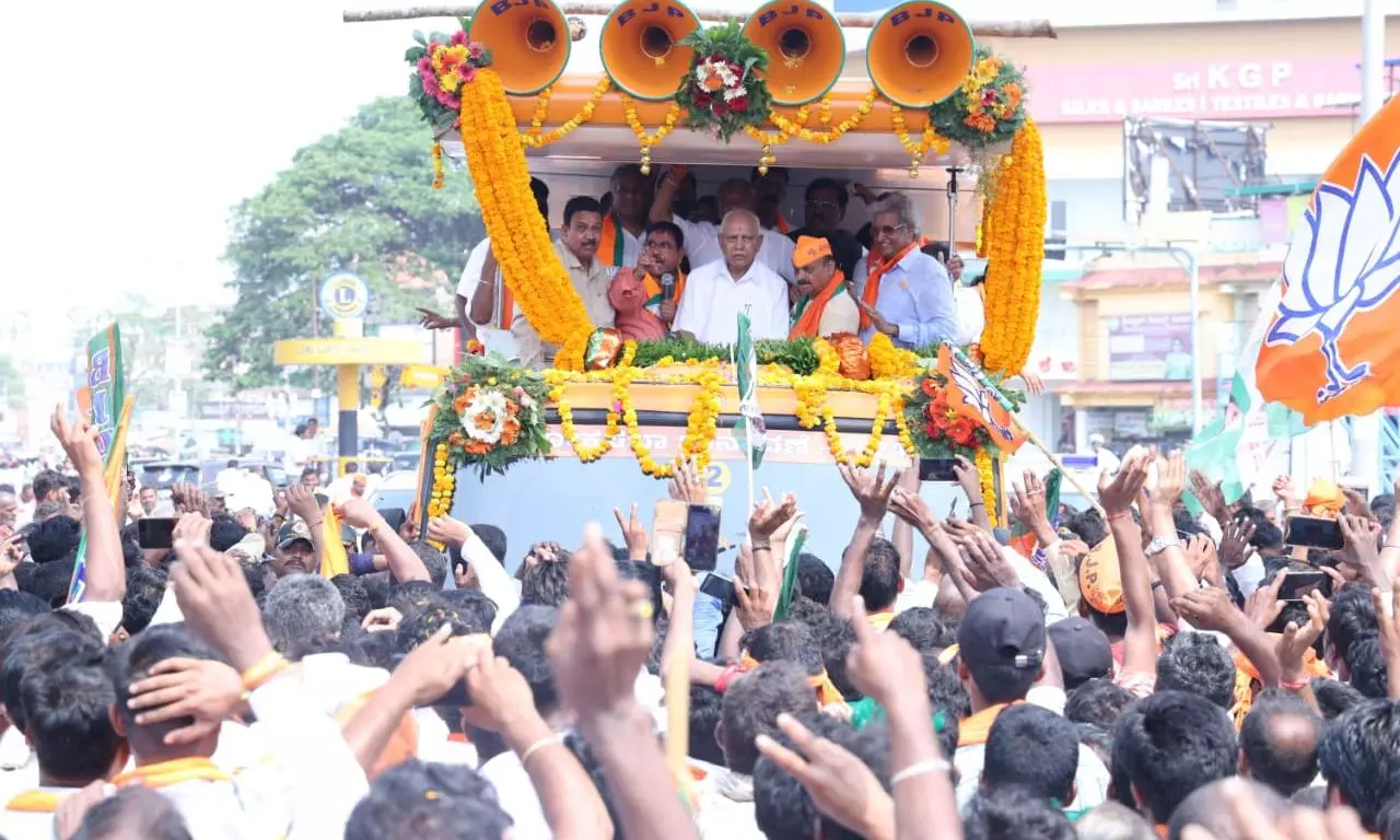 Addressing the crowd during the roadshow, Yediyurappa urged voters to ensure Basavaraj Bommai's victory with over two lakh vote margin. He called upon BJP and JD(S) workers to unite in their efforts, visiting every household until the conclusion of the Lok Sabha polls.