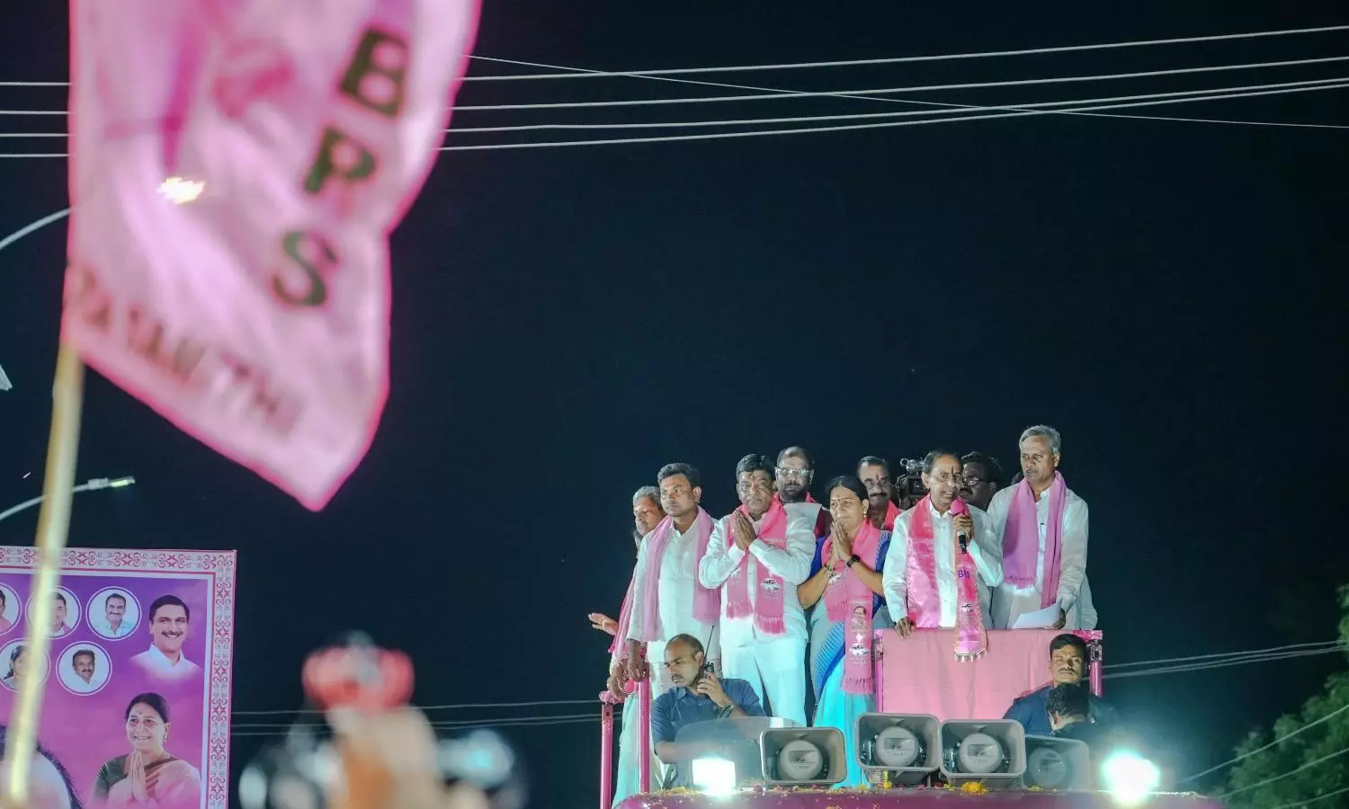 BRS Khammam candidate Nama Nageswara Rao and Mahbubabad BRS candidate Malothu Kavitha participated in the roadshow.