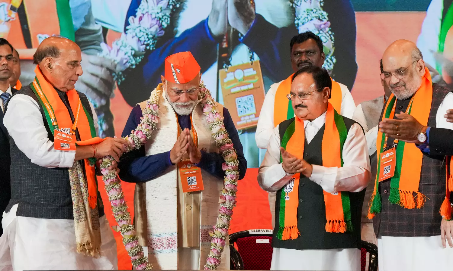 Around 11,500 BJP leaders, including Chief Ministers, MPs, union ministers and state unit presidents, are attending the national council meeting in the national capital, where they will seek guidance from the party's top brass, including Modi, who is confident of scoring a third consecutive victory in the Lok Sabha polls.