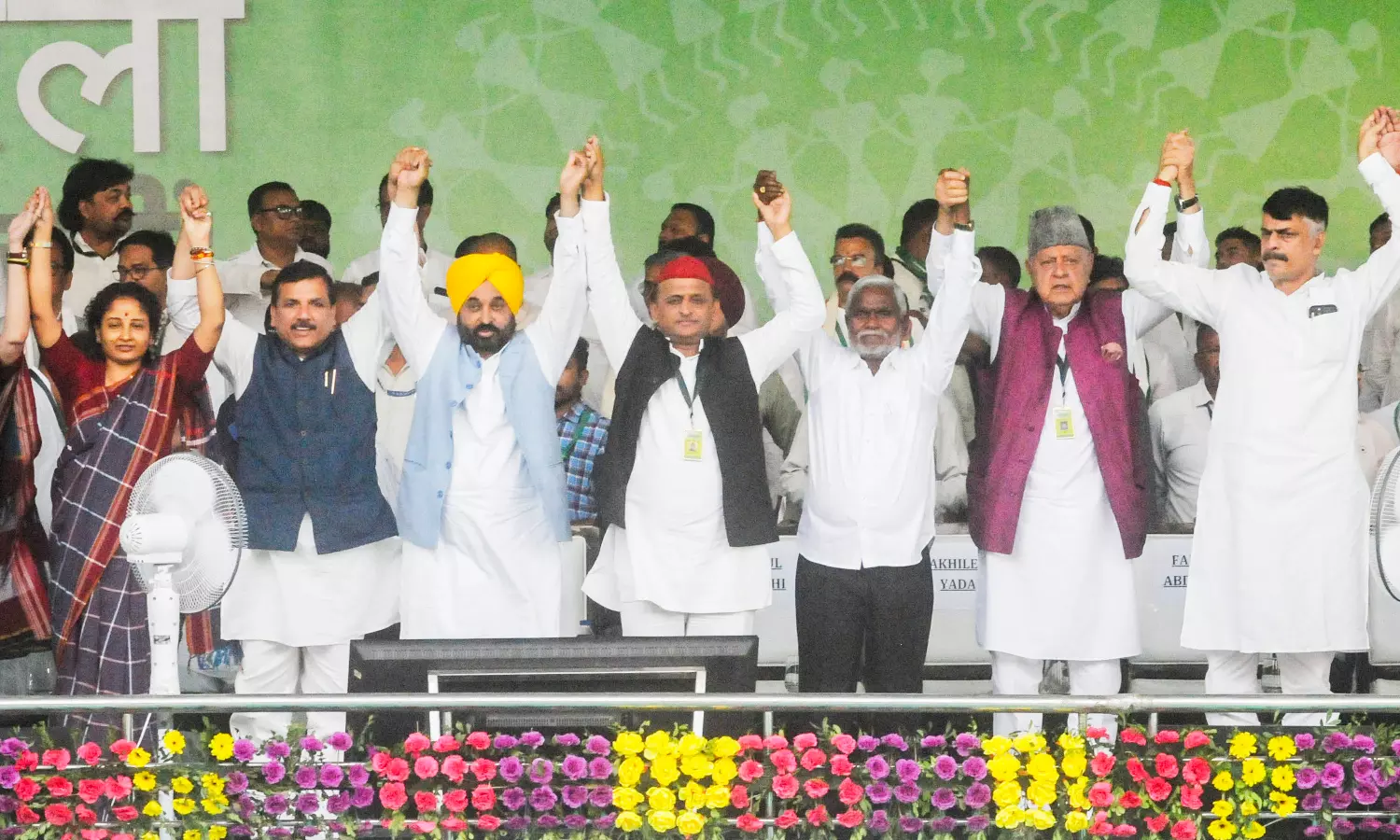 A total of 28 political parties attended the rally. JMM supremo Shibu Soren, National Conference president Farooq Abdullah, RJD leader and former Bihar deputy chief minister Tejashwi Yadav, Samajwadi Party chief Akhilesh Yadav, Punjab Chief Minister Bhagwant Mann and others attended the rally in a mega show of strength for the alliance.