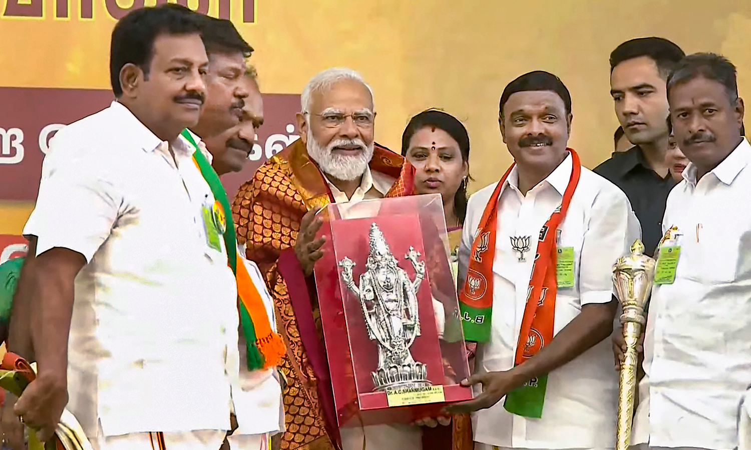 At the rally, Modi also introduced the party’s candidates -- K. Annamalai (Coimbatore), Union minister L. Murugan (The Nilgiris), A.P. Muruganantham (Erode) and K. Vasantha Rajan (Pollachi) -- and urged people to support them.
