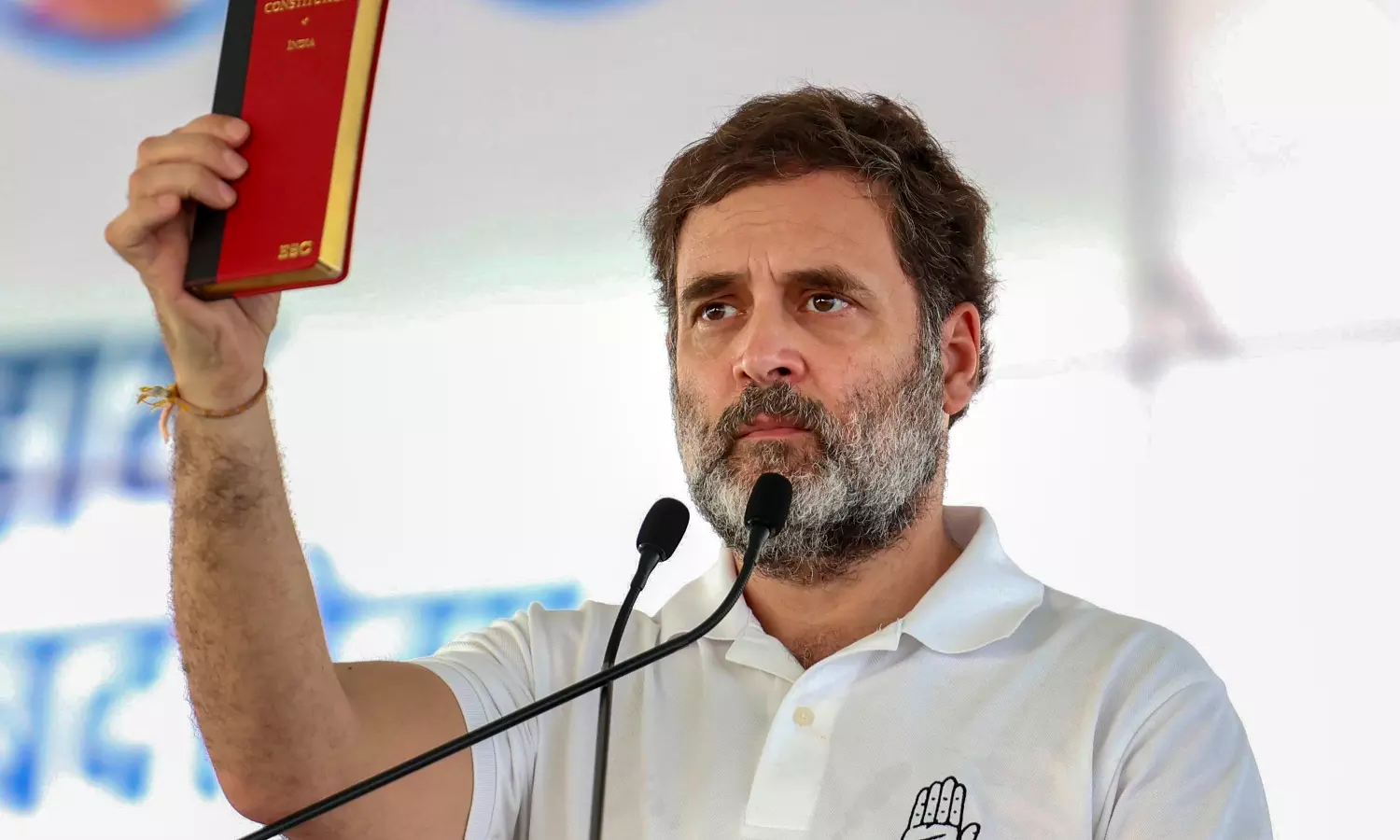 Holding a copy of the Constitution in his hand, Mr Gandhi said, “The BJP continues to attack the Constitution by depriving the Dalits, farmers and backward classes.”