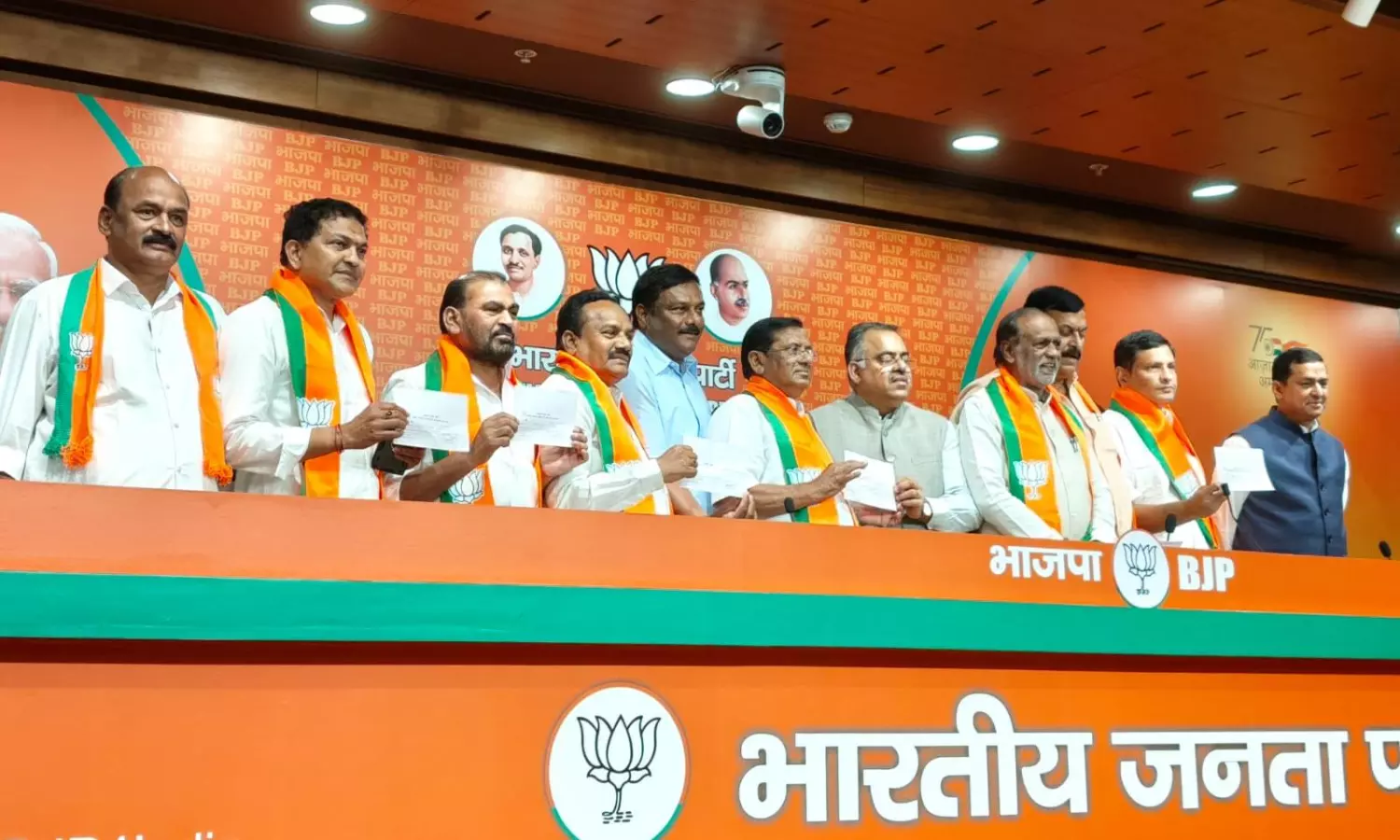 Hyderabad, Adilabad: A number of senior BRS leaders including former MPs Godem Nagesh (Adilabad) and Sitaram Naik (Warangal), former MLA Jalagam Venkat Rao (Khammam) and Shanapudi Saidireddy, as well as Srinivas Gomasa of the Congress, joined the BJP in presence of the party’s Telangana state incharge Tarun Chugh in Delhi on Sunday.