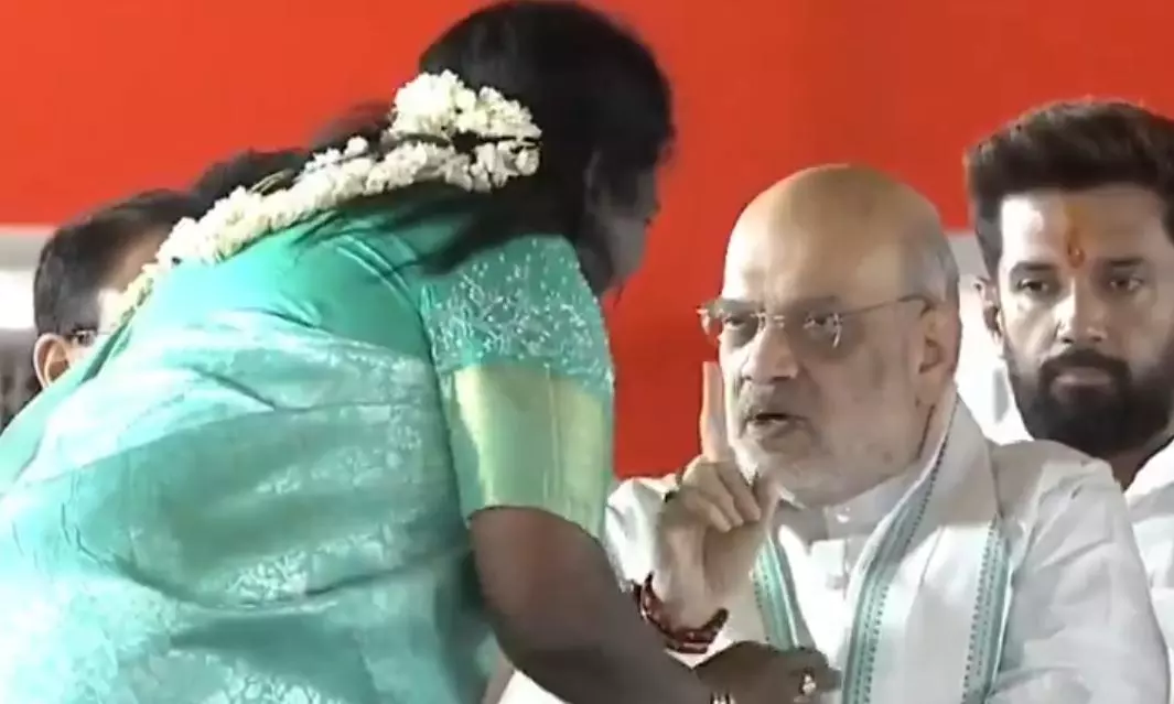 In the video, the former Governor of Telangana, Soundararajan, is seen walking briskly on the stage to take her seat when she wishes former Vice President Venkiah Naidu and Amit Shah, who were seated next to each other, and goes past them when Shah beckons her with a raised finger.