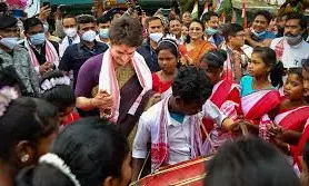 Recalling her visit to the state during the assembly polls she said, “When I came to Assam and visited tea gardens before assembly polls 2-3 years ago, I had promised to raise the wages if Congress formed the government. But you chose BJP and the wages were not raised from around Rs 250.”