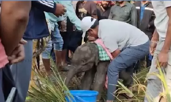 Forest officials said a herd of 22 elephants had entered Shyamasundarpur village in Angul on November 8. During their nocturnal movement, a baby elephant got trapped in the slush of a paddy field and was accidentally left behind. Villagers reported that the calf had struggled throughout the night to free itself.