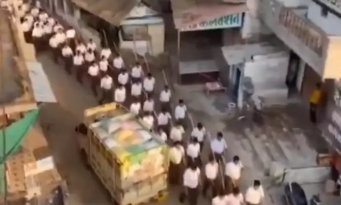 The RSS-BJP cadre also highlighted the jail stints of the AAP leaders, including Mr Kejriwal and the "scams and corruption" over which they were arrested