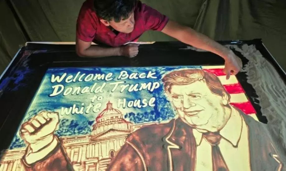 Bhubaneswar: Renowned sand artist Manas Sahoo congratulated U.S. President-elect Donald Trump on his remarkable victory with a special sand animation.