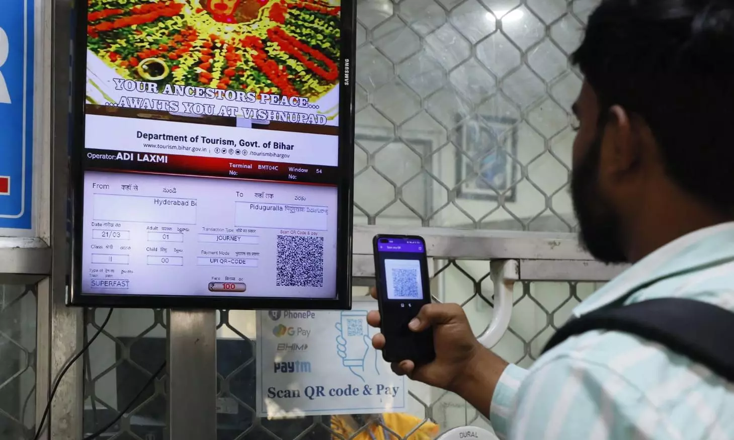 Hyderabad: Train passengers can purchase unreserved tickets through a QR code facility at the general booking counters, South Central Railway said on Thursday. This cashless transaction has been implemented at 31 counters in 14 stations of Secunderabad division: Secunderabad, Hyderabad, Kazipet, Begumpet, Warangal, Mancherial, Lingampalli, Hitec city, James Street, Mahbubabad, Bellampalli, Fatehnagar Bridge, Sirpur Khagaznagar and Vikarabad.