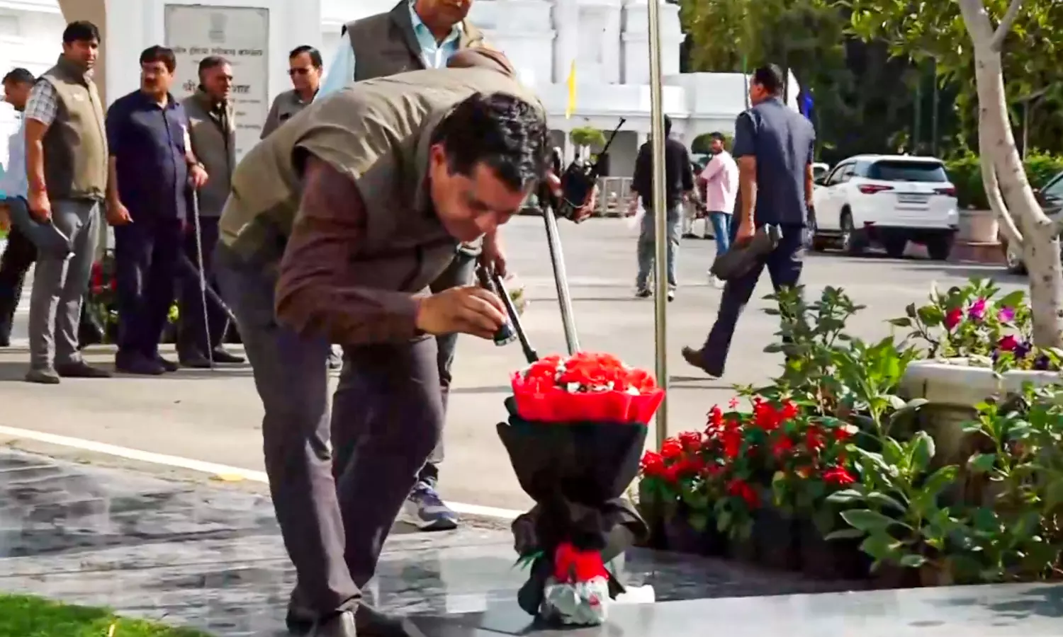Police said the vehicle, driven by a masked man, entered through Gate No. 2 around 2 pm, broke past barriers and proceeded towards the Speaker’s office, where a bouquet was placed before the driver fled.