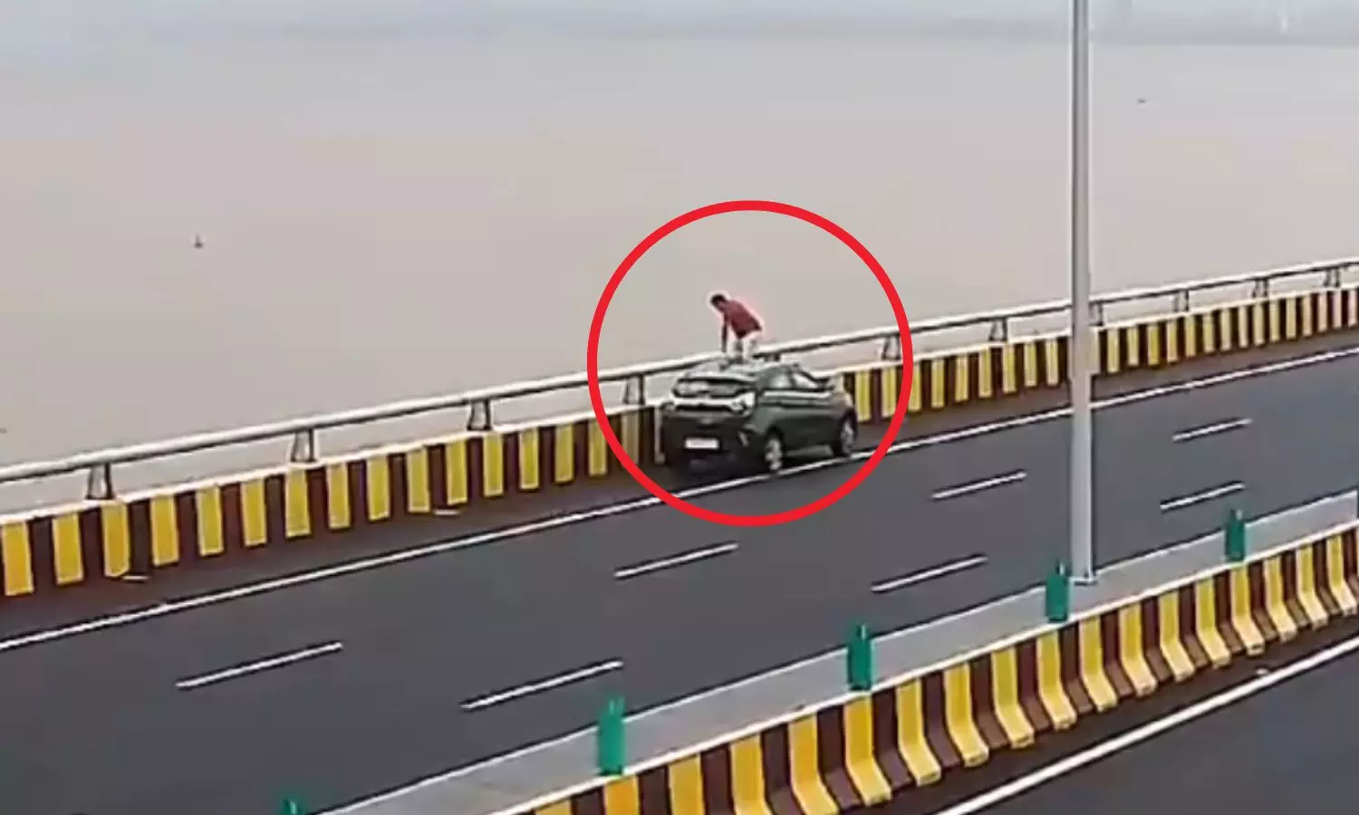 A video of a man stopping his car on the newly opened Atal Setu bridge and jumping-off the railings into the sea is going viral on social media.