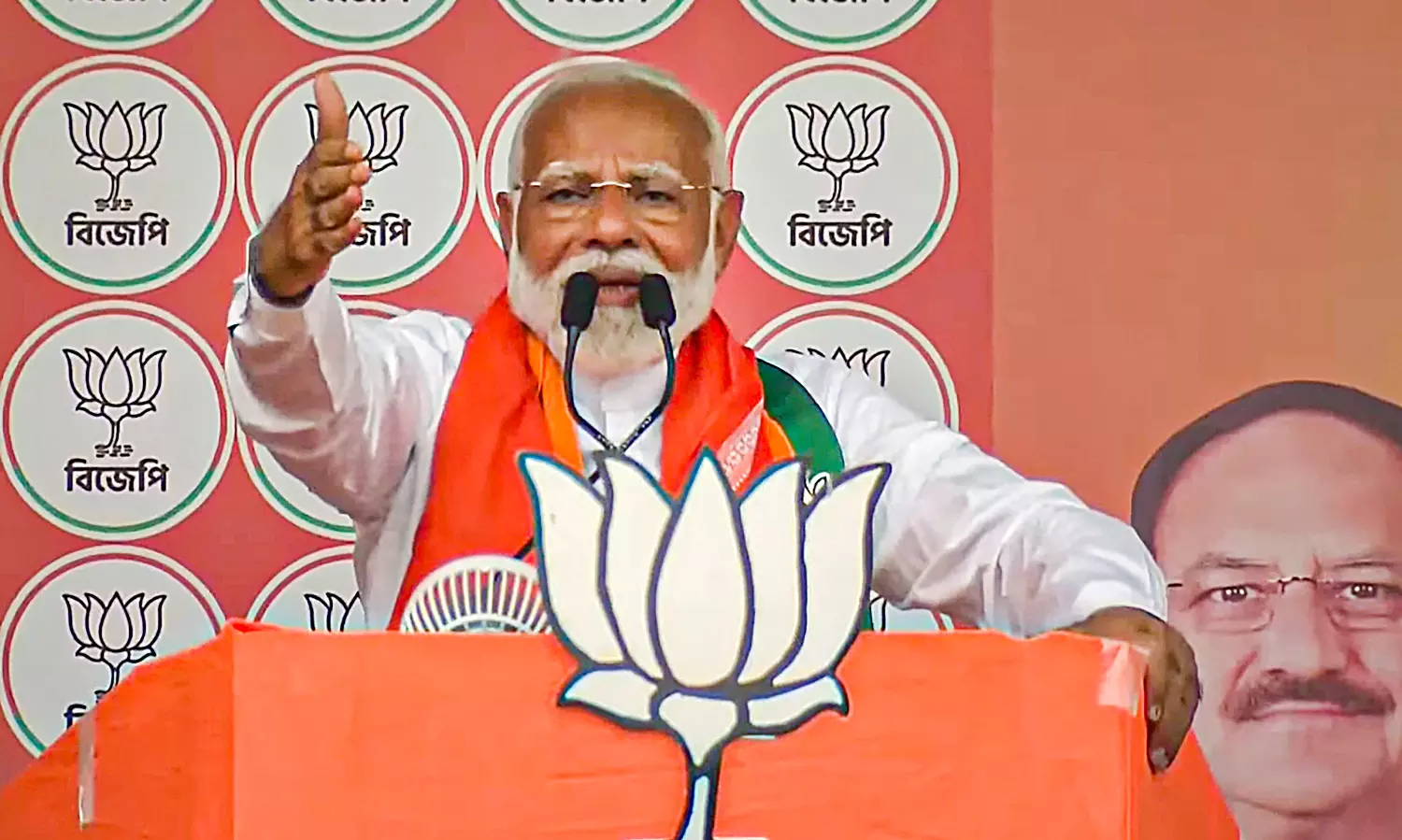 Modi alleged: “The TMC and the I.N.D.I.A. jamaat are taking Bengal in the opposite direction of development. The TMC can't tolerate Bengal's love for the BJP. So much so that it has started hating Bengal and is resorting to only one weapon it is left with and that is obstructing all Central government schemes in the state. The TMC says -- Eta hote debo na (Won't allow it to happen) to all developmental schemes by the BJP-led Centre.”