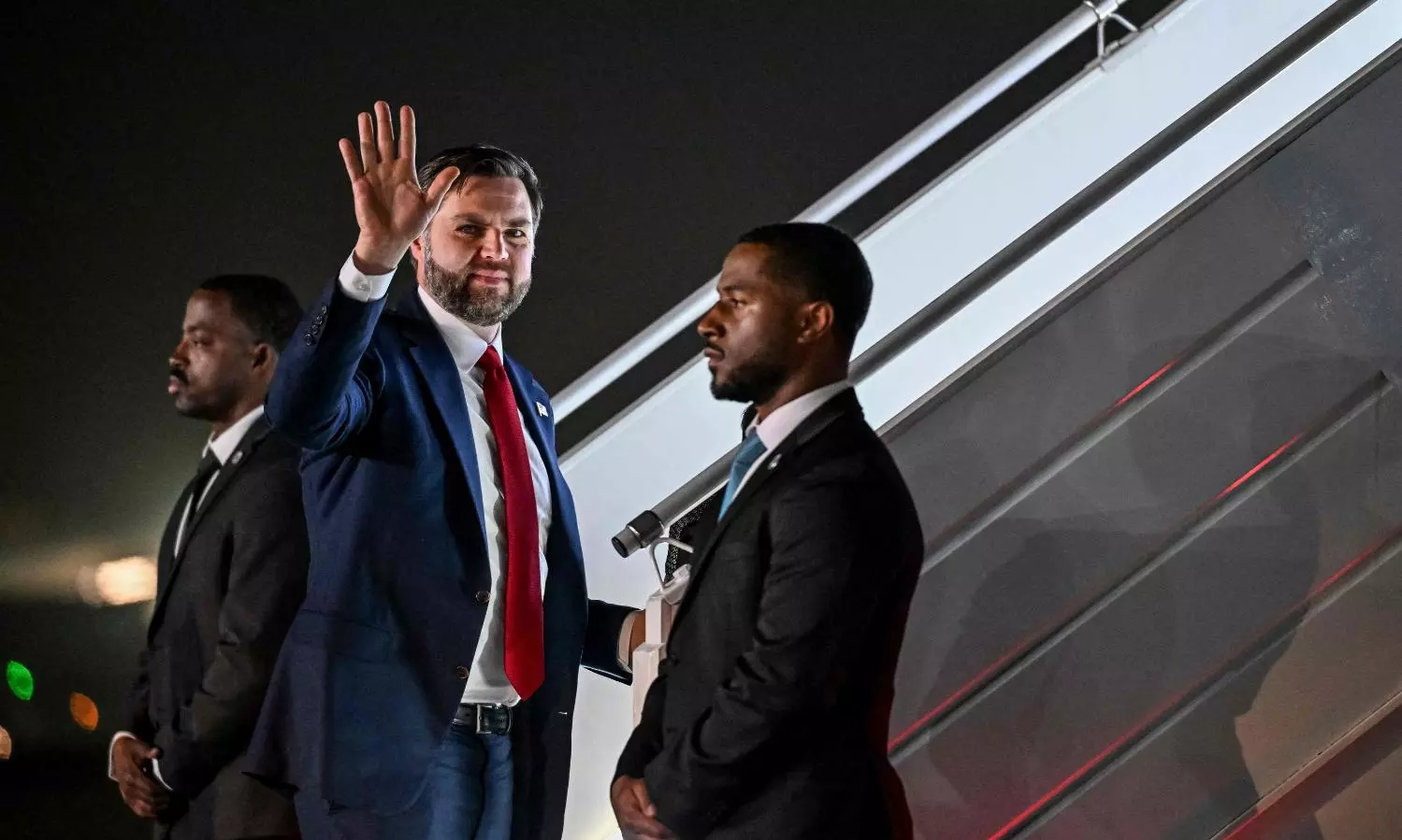 Vice President Vance walked the red carpet holding his sons, Ewan and Vivek, by the hand, while his wife, Usha Vance, carried their daughter Mirabel. The family appeared captivated by the impressive courtyard and architecture.