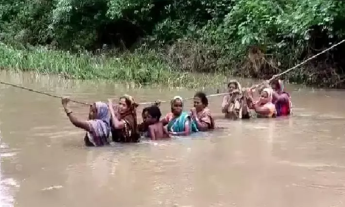Villagers In Odisha Risk Lives Daily To Cross Flooded River With Ropes
