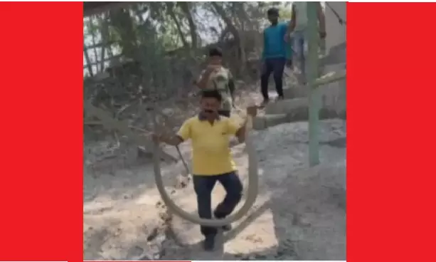 The snake was spotted by construction workers at a site in the Kolanara area, known for its tribal population and dense forest cover. Alarmed by the unexpected sighting, the workers immediately contacted a local snake rescue team.