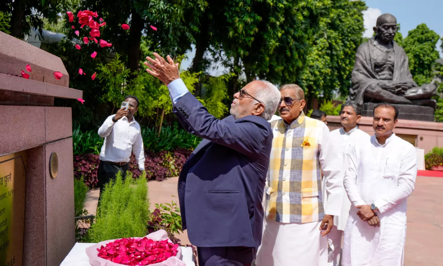 New Delhi: Opposition vice-presidential candidate B. Sudershan Reddy on Thursday filed his nomination papers in the presence of top Congress leaders Mallikarjun Kharge, Sonia Gandhi and Rahul Gandhi. Mr Reddy, a former Supreme Court Judge, submitted four sets of nomination papers before the Rajya Sabha secretary general, who is also the returning officer for the vice-presidential election. Before filing his nomination, Mr Reddy offered floral tributes to Mahatma Gandhi.