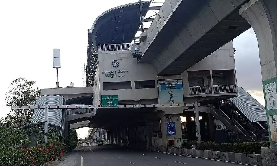 Hyderabad: A portion of the road at Deeptisrinagar in Miyapur caved in on Friday. There were no casualties. The road caved in due to leakage of water from damaged pipelines. GHMC and
