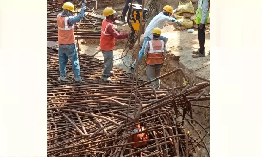 As per initial reports, three workers were busy carrying out heavy iron-rod binding works when the mishap occurred. Sources said the workers were reportedly trapped under the iron-rods after they fell on them during the binding work.
