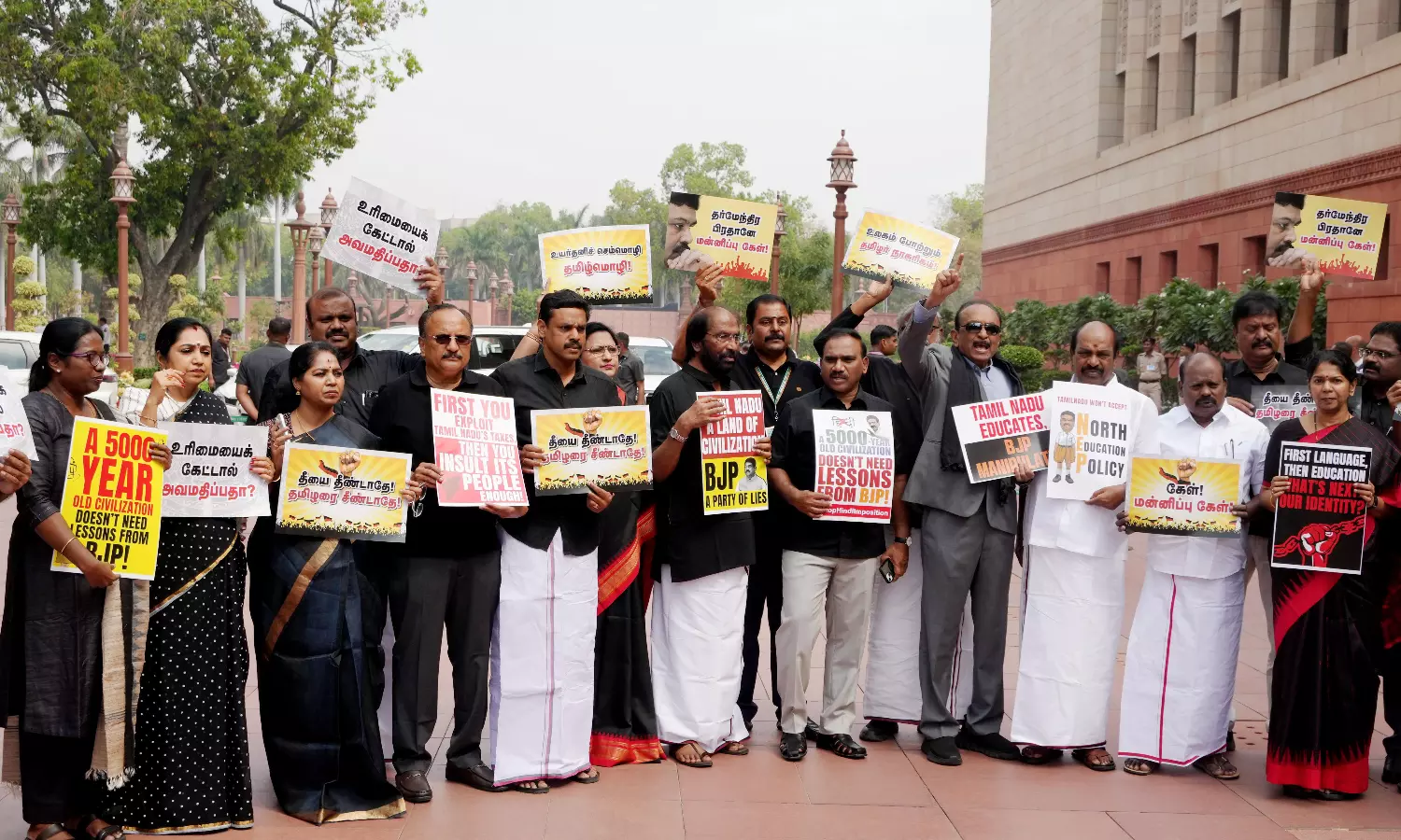 DMK MPs stage protest in Parliament over NEP, three-language formula