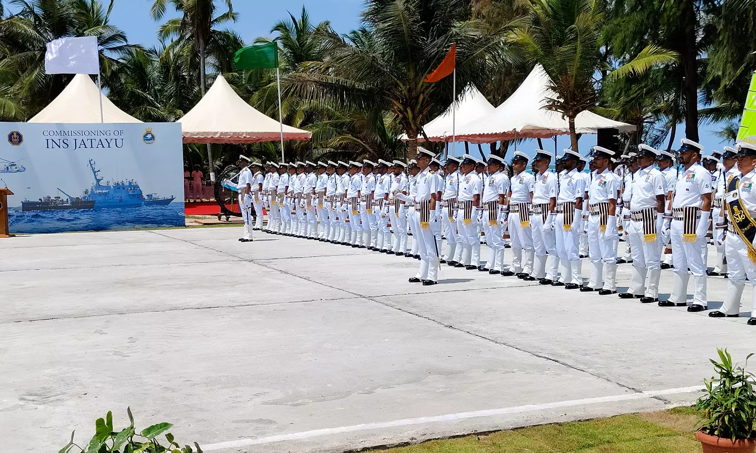 The commissioning event was attended by Admiral R. Hari Kumar, the Chief of Naval Staff, and Praful K. Patel, the Administrator of Lakshadweep. Commander Vrat Baghel, the first Commanding Officer of INS Jatayu, led the invocation ceremony with a recitation in Sanskrit, followed by the reading of the commissioning warrant. The ceremonial unveiling of the commissioning plaque and hoisting of the Naval Ensign to the National Anthem marked the formal establishment of INS Jatayu.
