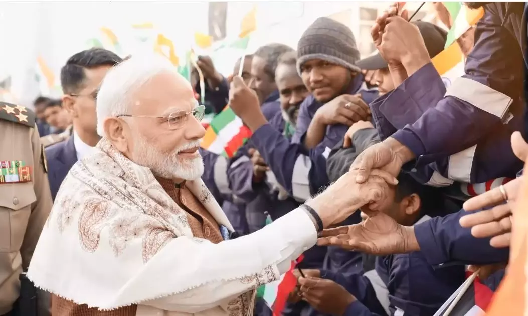 PM Modi spoke about the aspirations of Indian workers, linking them to his vision for a "Viksit Bharat 2047" (Developed India 2047).