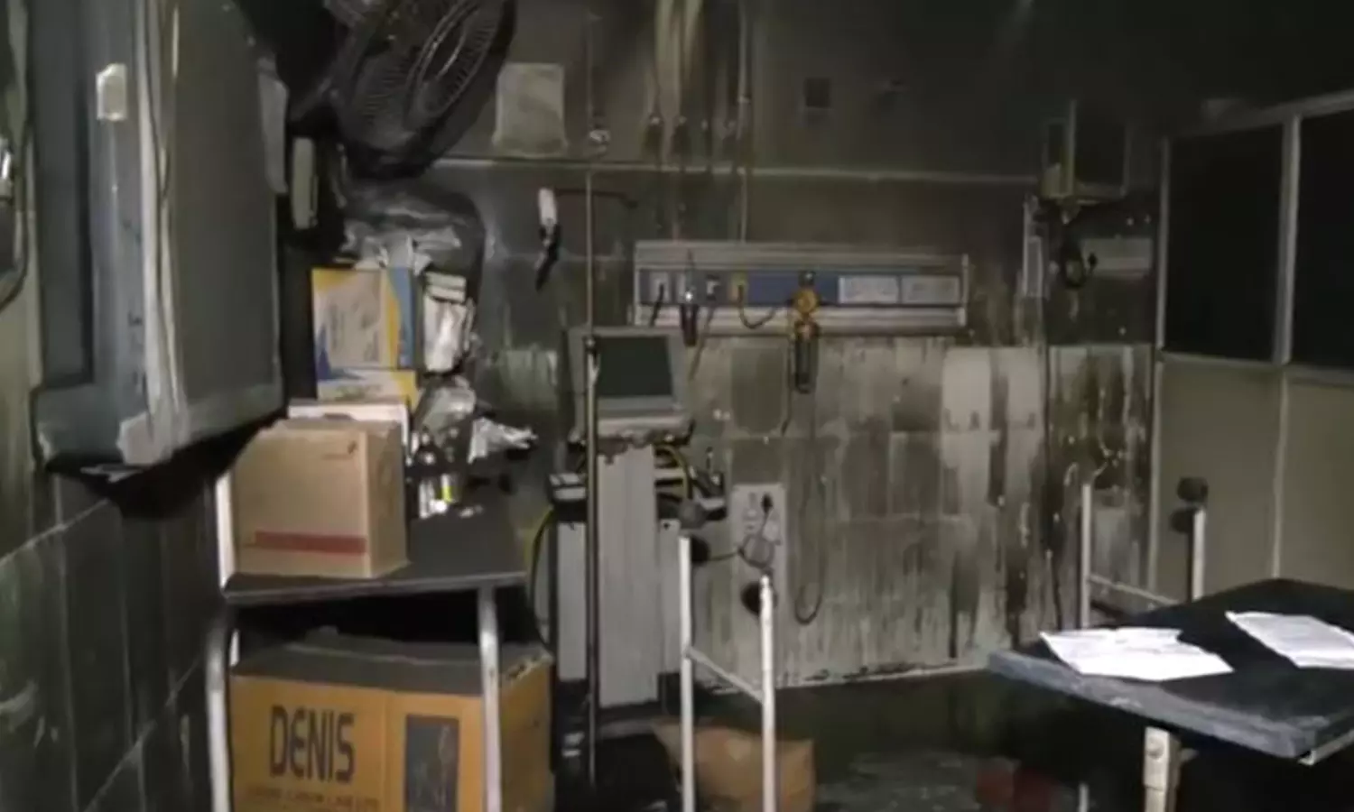 Various documents, ICU equipment, blood sample tubes, and other items stored in the area were gutted by the fire.