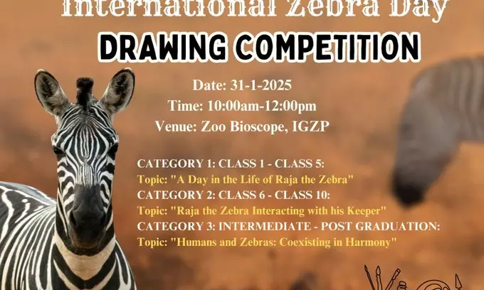 Visakhapatnam: Indira Gandhi Zoological Park (IGZP) in Visakhapatnam will celebrate the International Zebra Day on Friday from 10:00 a.m. to 12 noon with a drawing competition for participants of all ages spotlighting Raja, the beloved zebra, who has become a cherished member of the zoo community.
