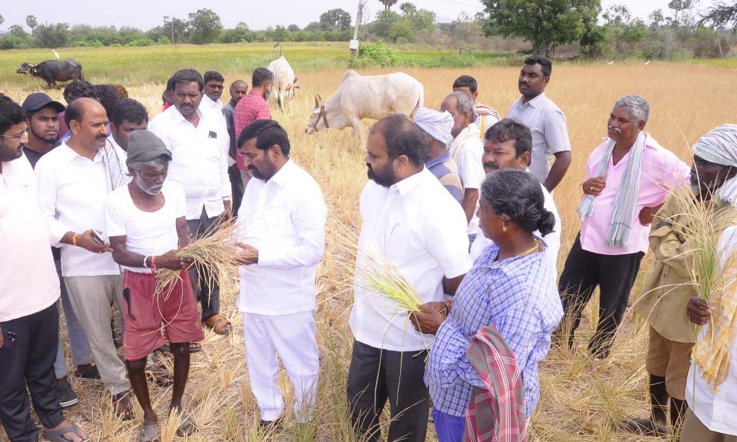 Hyderabad: BRS MLA G. Jagadish Reddy met farmers and blamed the state government for drying up of the crops. He opined the government can seek 10 TMC of water from Karnataka and bail them out.
