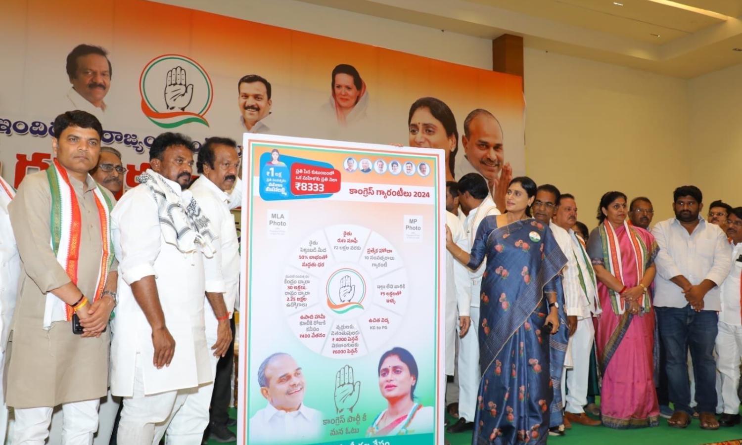 APCC president Y.S. Sharmila Reddy announced the nine guarantees as part of her party’s manifesto released at the party office in Vijayawada on Saturday.