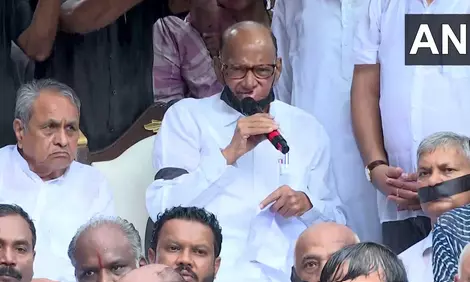 Pune: The Nationalist Congress Party (SCP) chief Sharad Pawar, along with Maha Vikas Aghadi party leaders and workers donning black bands on their arms, staged a protest on Saturday in Pune against the Badlapur incident, where two minor girls were allegedly sexually assaulted at a local school.