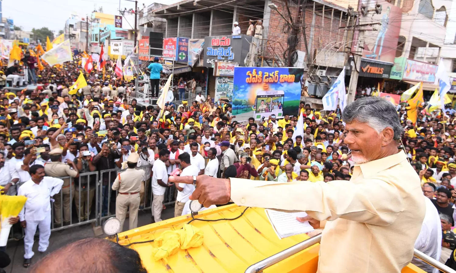 The former chief minister accused Jagan Mohan Reddy of giving ₹10 to people but taking away ₹1,000 from them.