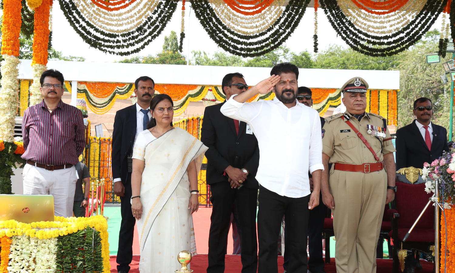 Addressing the decennial celebrations of Telangana state formation at Parade Ground in Secunderabad, Revanth Reddy said Sonia Gandhi as UPA chairperson, Meira Kumar as Lok Sabha Speaker and the late Sushma Swaraj as Leader of Opposition in the Lok Sabha were instrumental in the formation of Telangana state.