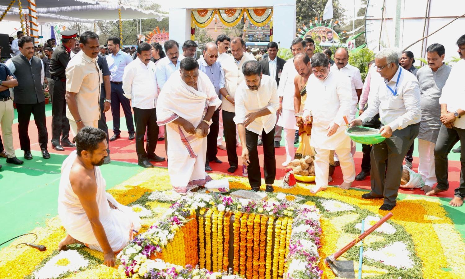 Revanth Reddy lays foundation stone for Rajiv Rahadari Elevated Corridor at TIMS