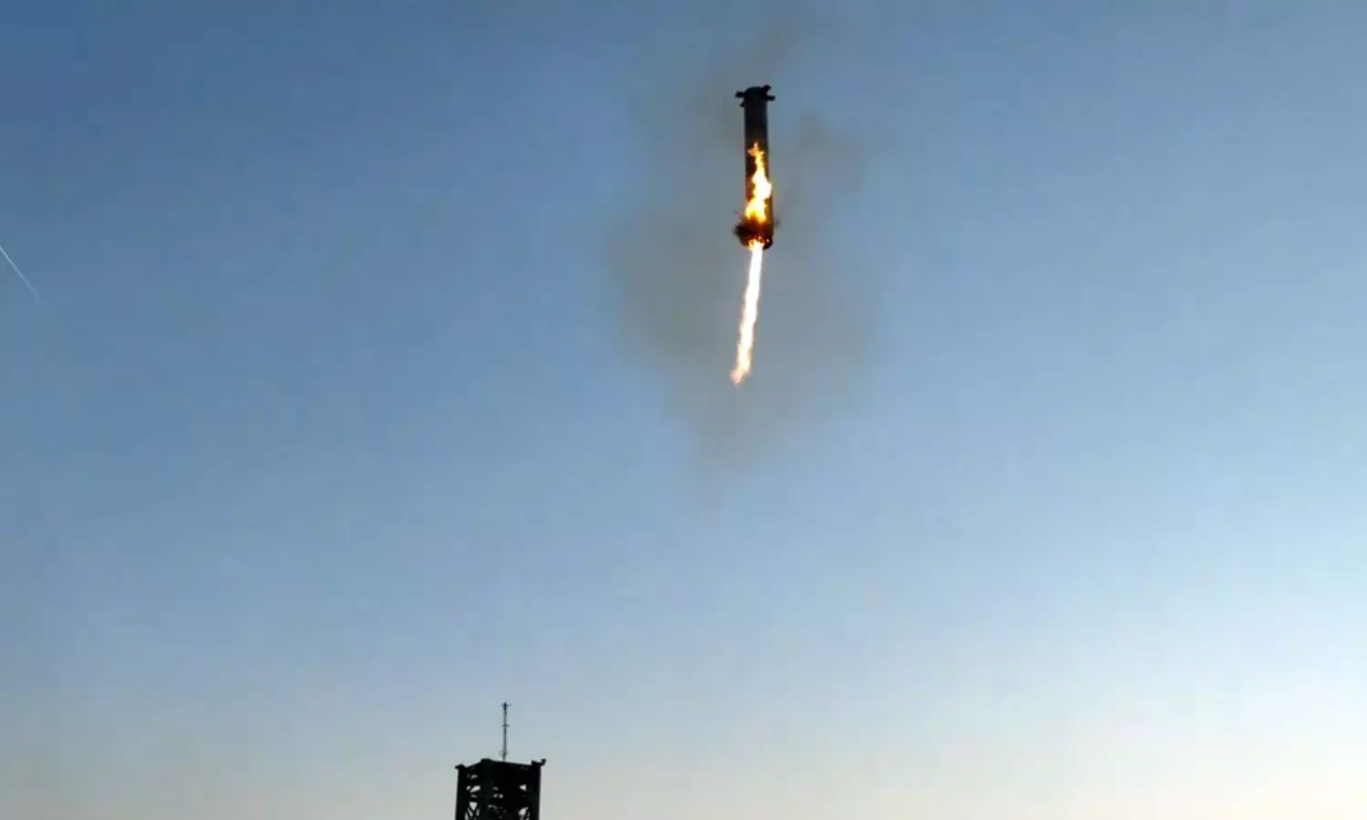 SpaceX achieves a historic milestone by successfully catching its Starship booster with mechanical arms during a test flight