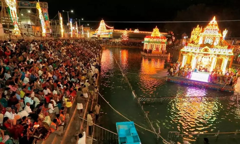Tirupati: The five-day annual Teppotsavam (float festival) culminated on a spiritual high at the famous hill shrine of Lord Venkateswara in Tirumala on Sunday. Tens of thousands of devotees thronged the Srivari Pushkarini tank to witness the celestial spectacle and seek divine blessings.