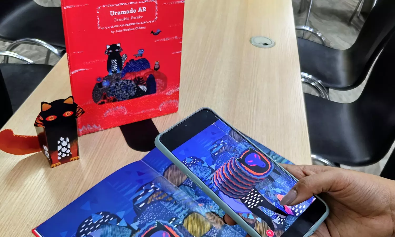 The third part is hands-on, where visitors can participate in a workshop to create masks of their spirit animals. "They cut out masks, scan them in the app, and suddenly their creation comes to life in AR," Jwalitha explains. There is even an option to turn their Tanuki into a pen holder.