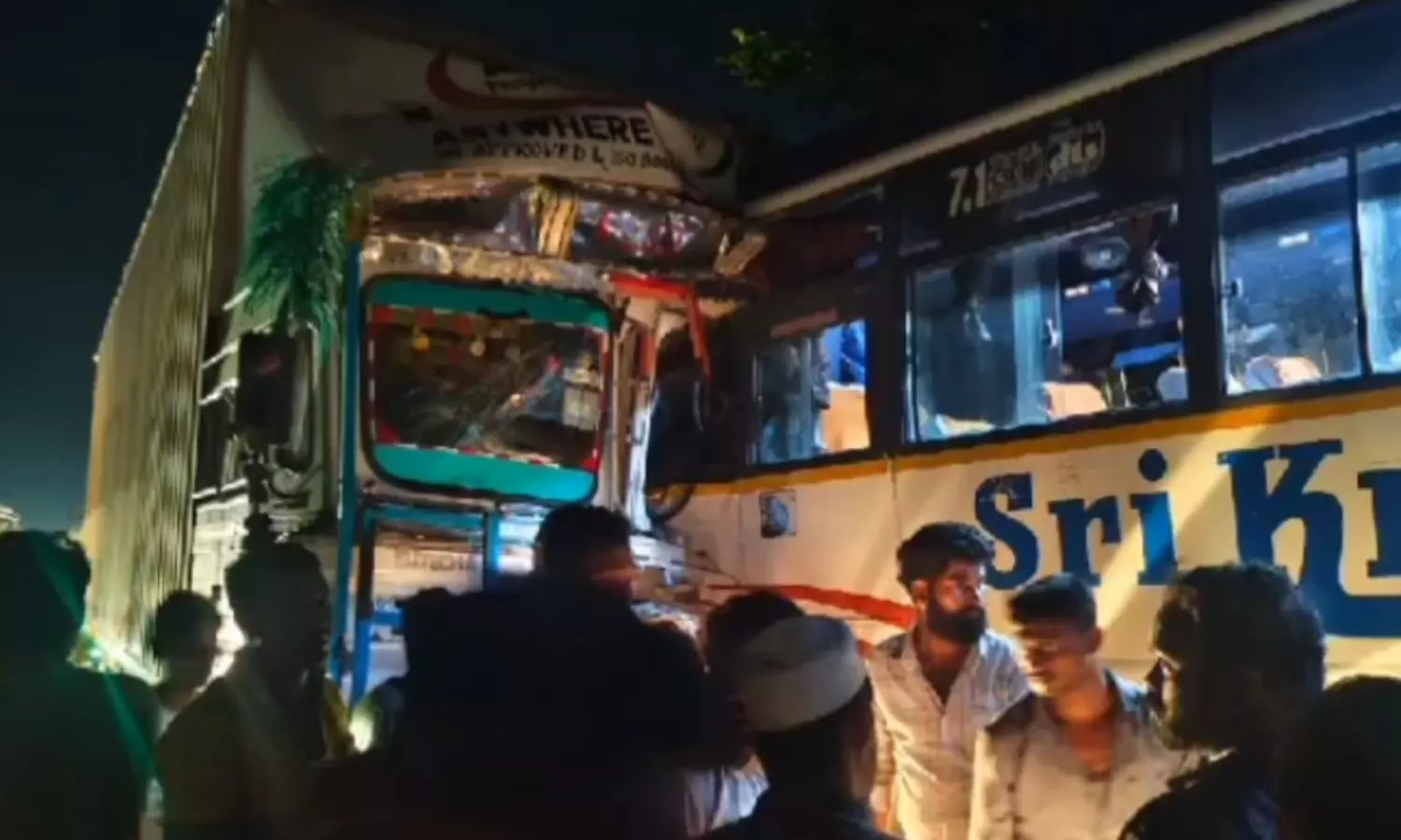A bus-truck collision in Choutuppal killed two passengers and injured 11 others. Investigation underway