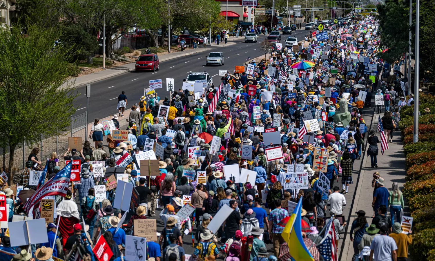 People rallied from New York City, with almost 8.5 million residents in a solidly blue state, to Driggs, a town of fewer than 2,000 people in eastern Idaho, a state Trump carried with 66% of the vote in 2024.