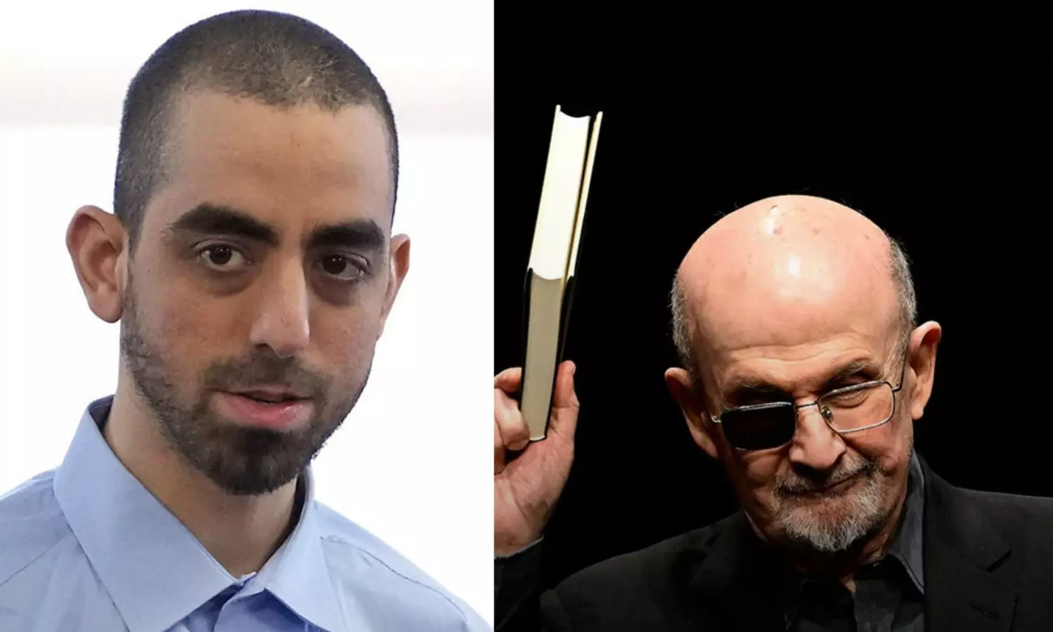 The trial of Hadi Matar (left) for the attempted murder of Salman Rushdie (right) began this week in New York. (Image: X)