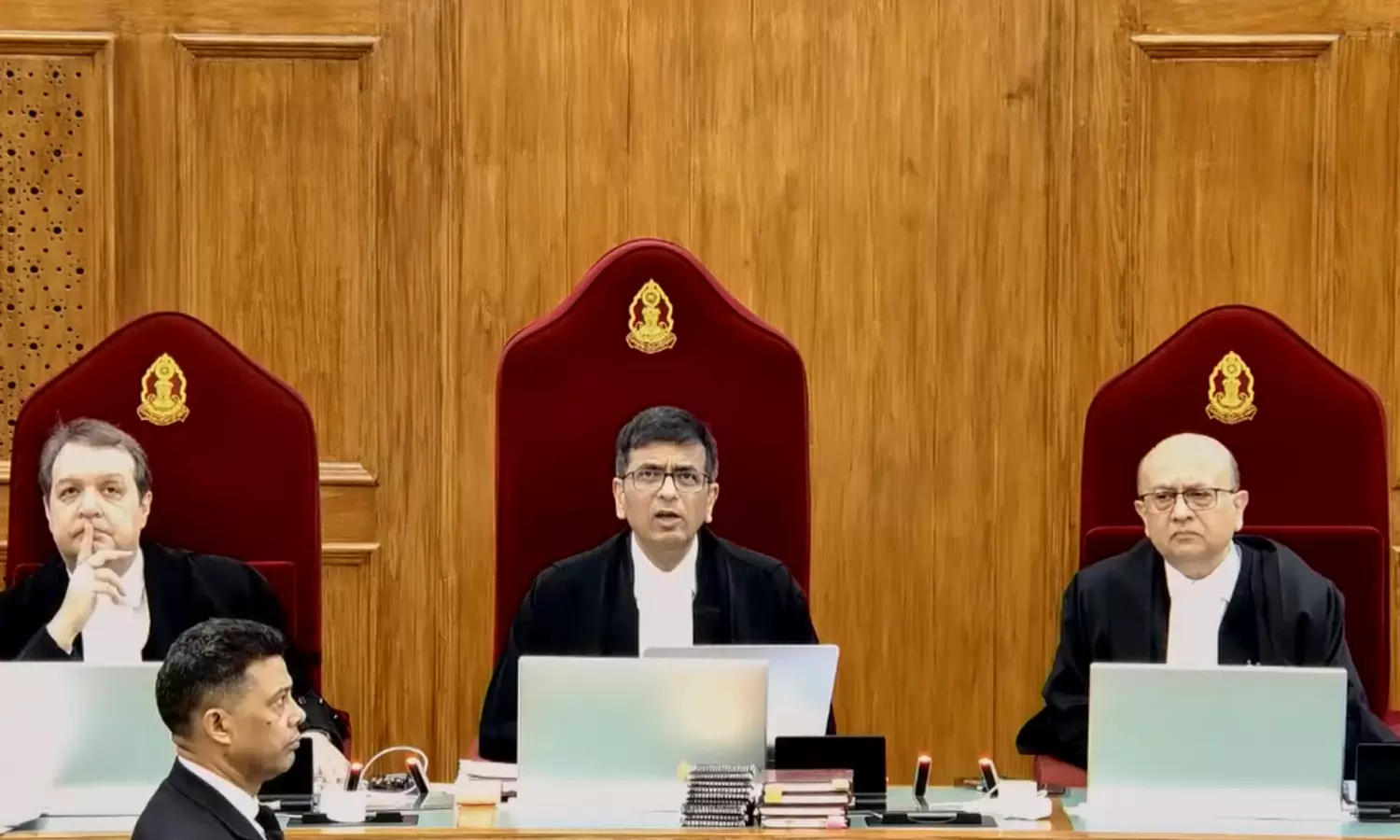 A bench comprising Chief Justice of India (CJI) D.Y. Chandrachud, Justice J.B. Pardiwala and Justice Manoj Misra during hearing on a suo moto case related to the alleged sexual assault and murder of a postgraduate trainee doctor in Kolkata, at the Supreme Court in New Delhi, Thursday, Aug. 22, 2024. (PTI Photo)